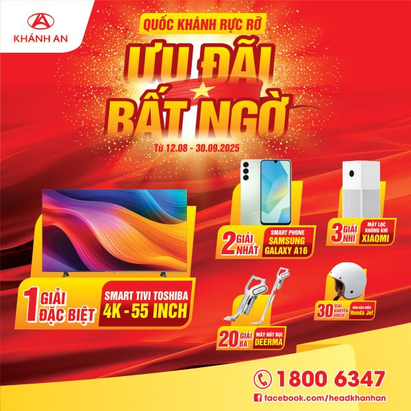 Khi mua xe trong thời gian khuyến mại, khách hàng được nhận lượt quay may mắn trên Zalo Mini App HEAD Khánh An với cơ hội trúng những phần quà cực giá trị: